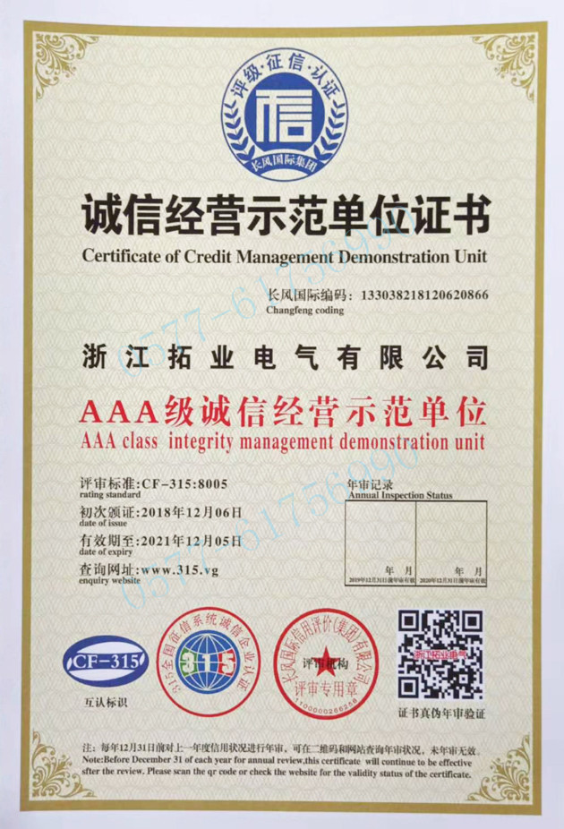 • 拓業電氣公司認為為國家、為社會、為客戶創造價值就是我們的存在價值。更管用、更耐用、更安全、更可靠,是我們質量管理的基本原則,我們通過努力為合作伙伴創造價值,才能體現自身的價值并獲得發展和成功......